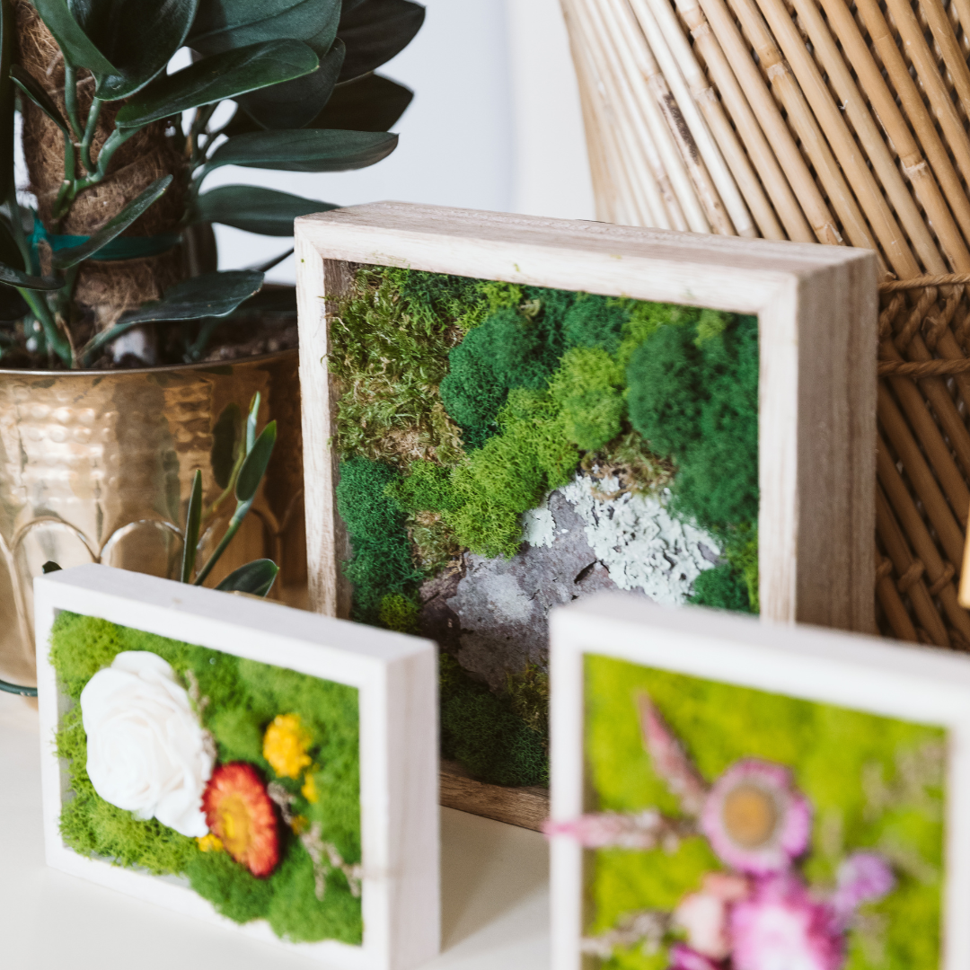 Hooray! You received your kit! These instructions are here to help guide you along the way but you certainly don't need to follow them exactly. The joy of creating a moss art piece (or any kind of art, really) comes from the magic of letting your heart and your hands guide you - not your brain. I hope the time you take to create your own unique piece of joy shows you just how important it is to let your creativity take root, even if only for this hour.