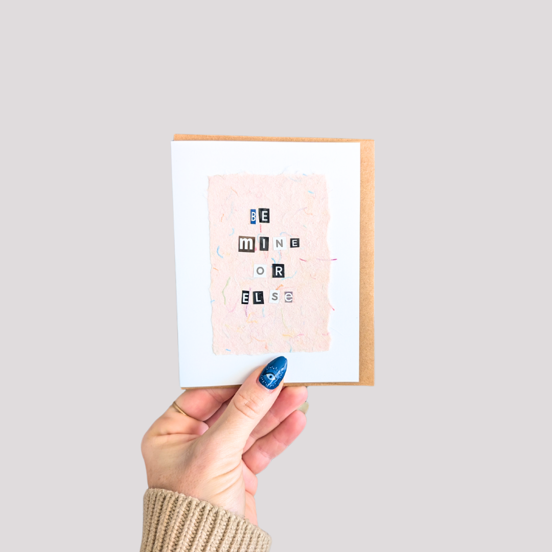 Lightly pink handmade paper on 100% recycled cardstock stock, greeting cards with a few different designs to celebrate your love